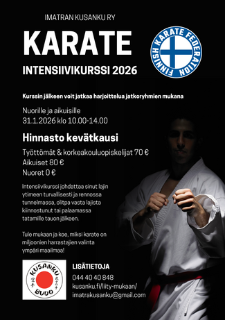 Seura järjestää nuorille ja aikuisille suunnatun karaten intensiivikurssin, joka on erinomainen tapa (uudelleen) aloittaa lajin parissa.